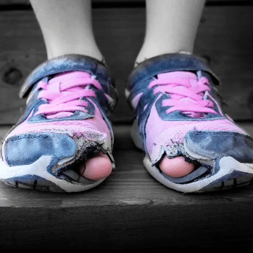 Ma fille de 6 ans qui cachait ses pieds sous la table pour qu'on ne voie pas le trou dans ses chaussures qu’elle porte quotidiennement depuis 1 an.
